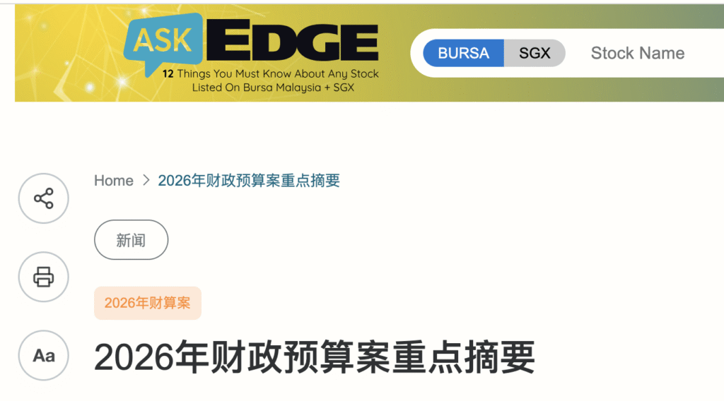根据马来西亚领先财经媒体《The Edge Malaysia 》报道,《2026年财政预算》中提出了一系列针对中小企业(SMEs)的扶持政策,重点集中在 数字化、自动化和战略科技领域。对于正在布局东南亚市场的中国企业而言,这些政策不仅意味着融资机会,也代表着企业落地马来西亚的重要战略窗口。