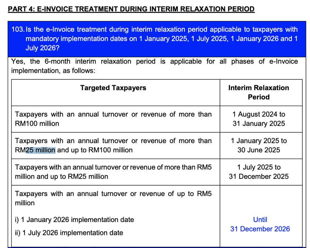 案例 B(中大型企业): 一家年收入达 RM5,000万的制造类有限公司。归类为第2阶段,强制起始日为 2025年1月1日。