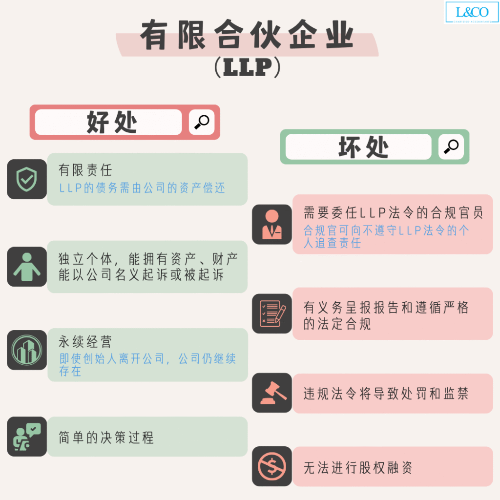 注册LLP的业者可以在无需担心个人资产、个人债务 & 符合严格条款的情况下做生意 - 结合了合伙企业(Partnership) 的灵活性与Sdn Bhd的有限责任特性,比Sdn Bhd合规成本低。LLP 本身不交公司税,仅个人交税。合规成本低(不用审计),要记账,年度申报,不能申请EP.